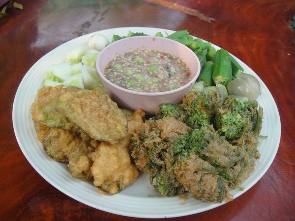 • นำ้พริกกะปิ ชะอมทอด ผักสด